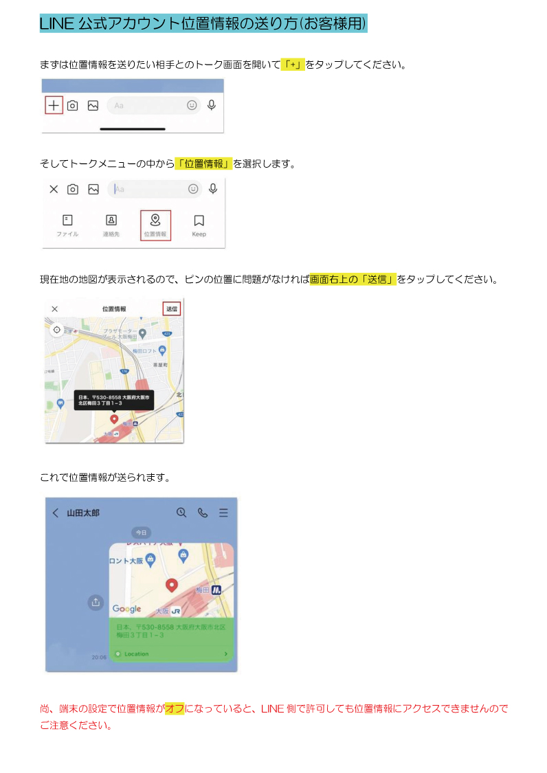 ※尚、端末の設定で位置情報がオフになっていると、LINE側で許可しても位置情報にアクセスできませんのでご注意ください。